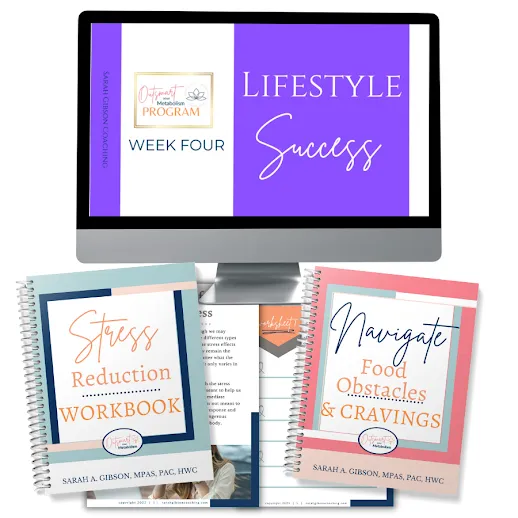 Get the BONUS workbooks: Stress Reduction Workbook and the Navigate Food Obstacles and Cravings Tip sheet