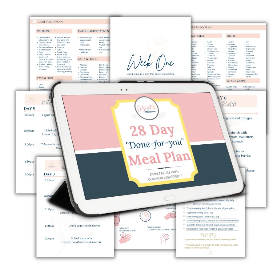The 28-Day Outsmart Your Metabolism Program takes the best parts of diets like keto, paleo, intermittent fasting, mediterranean, and atkins and has combined them into an easy-plan that targets healing metabolism specifically in women approaching the perimenopausal period.